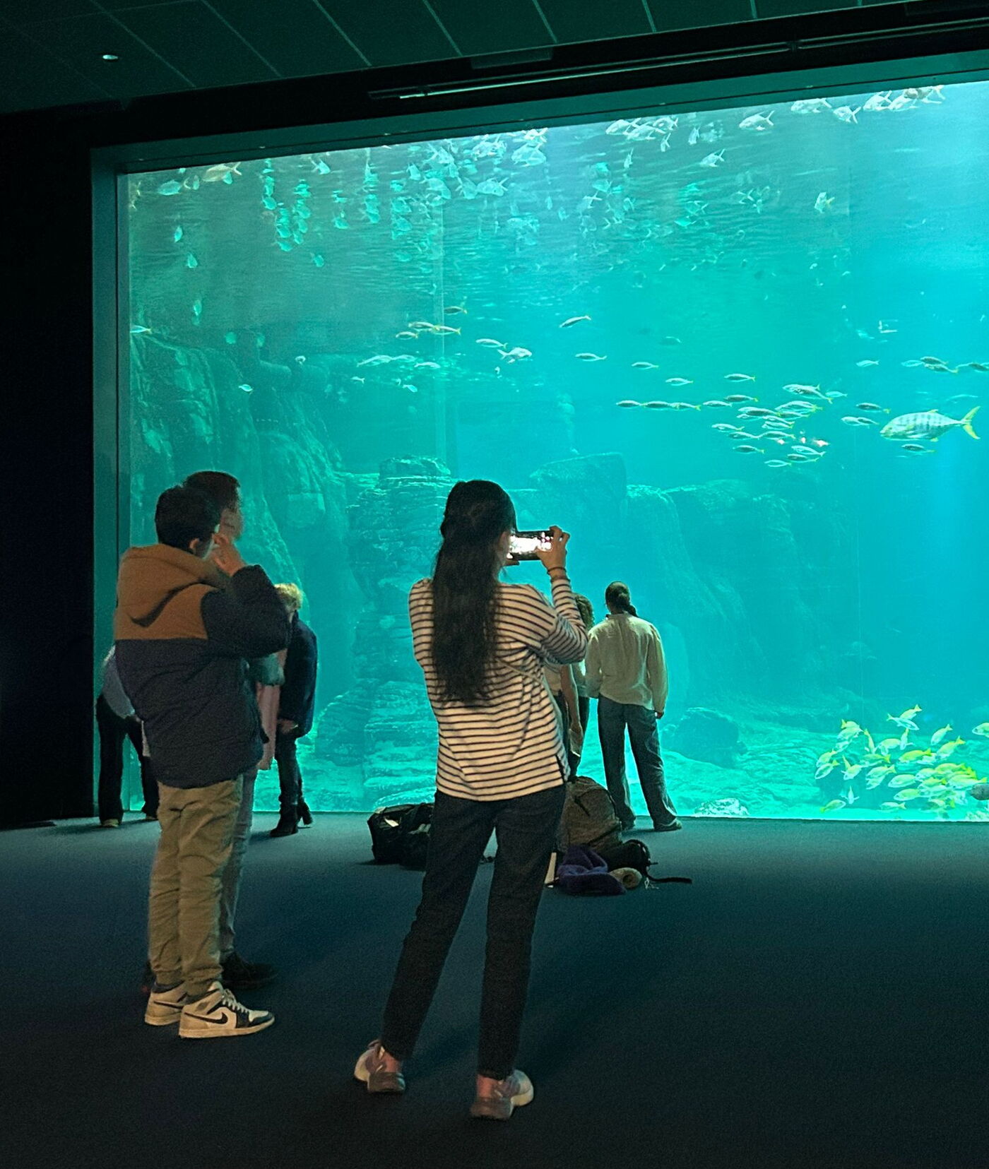 Am Donnerstag Morgen ging es für die Deutschen mit in den Unterricht. Hier haben sie in 4 Stunden erleben können, wie zum Beispiel der Englisch-, Technik- oder Physikunterricht in Frankreich abläuft. Danach ging es zum gemeinsamen Mittagessen in die Schul-Cafeteria. Am Nachmittag besichtigten wir nach einer lustigen Busfahrt (unter anderem wurden deutsche Zungenbrecher geübt) gemeinsam mit den französischen SchülerInnen in Boulogne-sur-Mer das Aquarium Naussicaa. Die Neugierde war groß, schließlich handelt es sich hierbei um das größte Aquarium Europas, welches eine große Vielfalt an Meerestieren wie Rochen und Haien bereit hält. Außerdem konnte man eine Seehund-Show besuchen, Schildkröten beobachten, Fische streicheln und an interaktiven Aktionen teilnehmen.